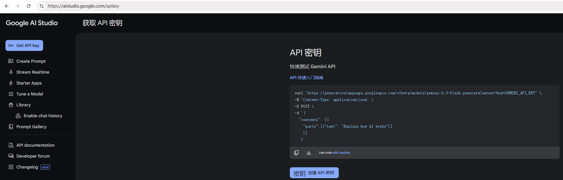 访问 Goodle AI Studio https://aistudio.google.com/apikey